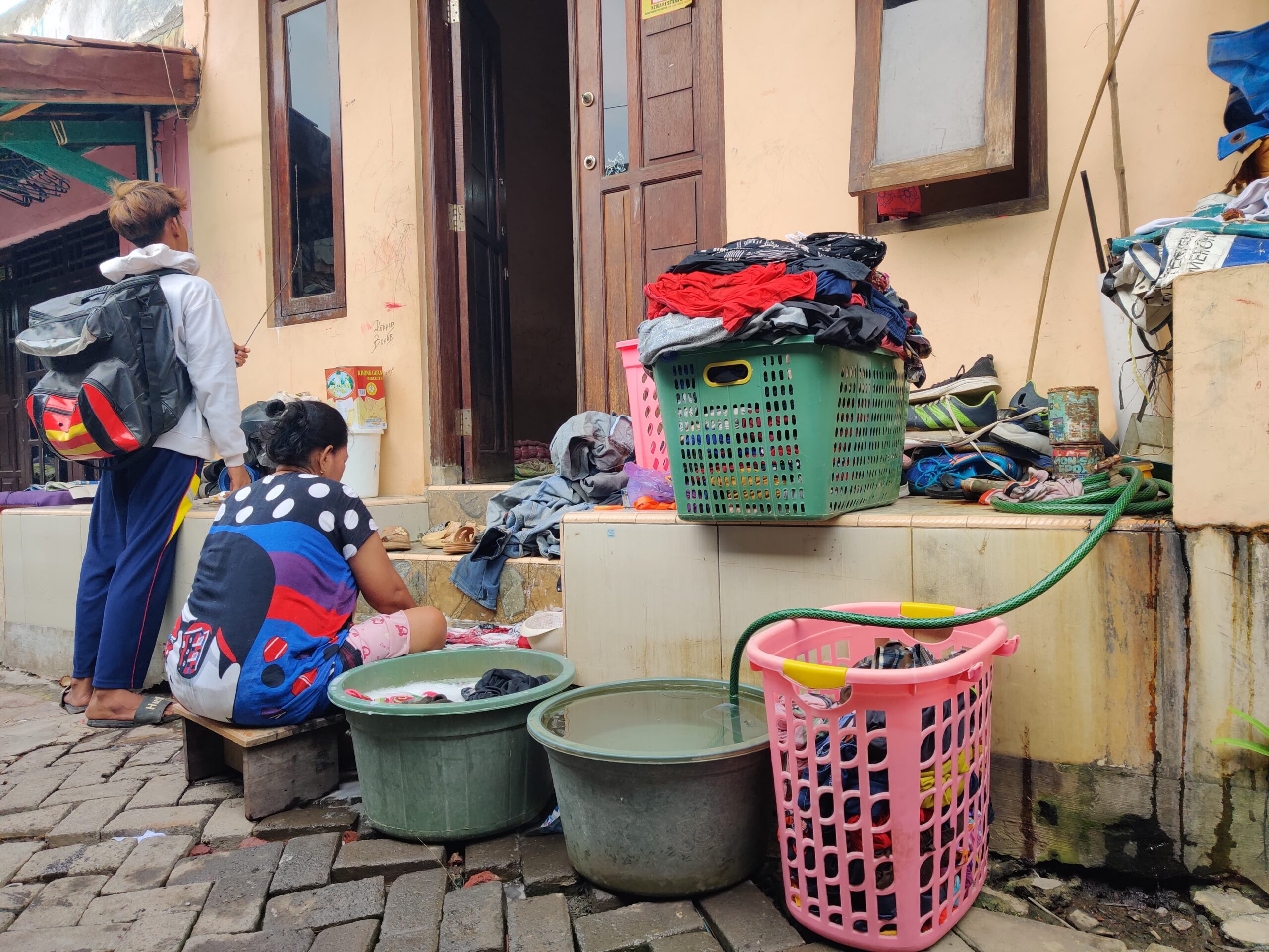 Aktivitas warga Kampung Baru, Kelurahan Panjang Wetan setelah air PAM kembali lancar 24 jam, Senin (25/12).