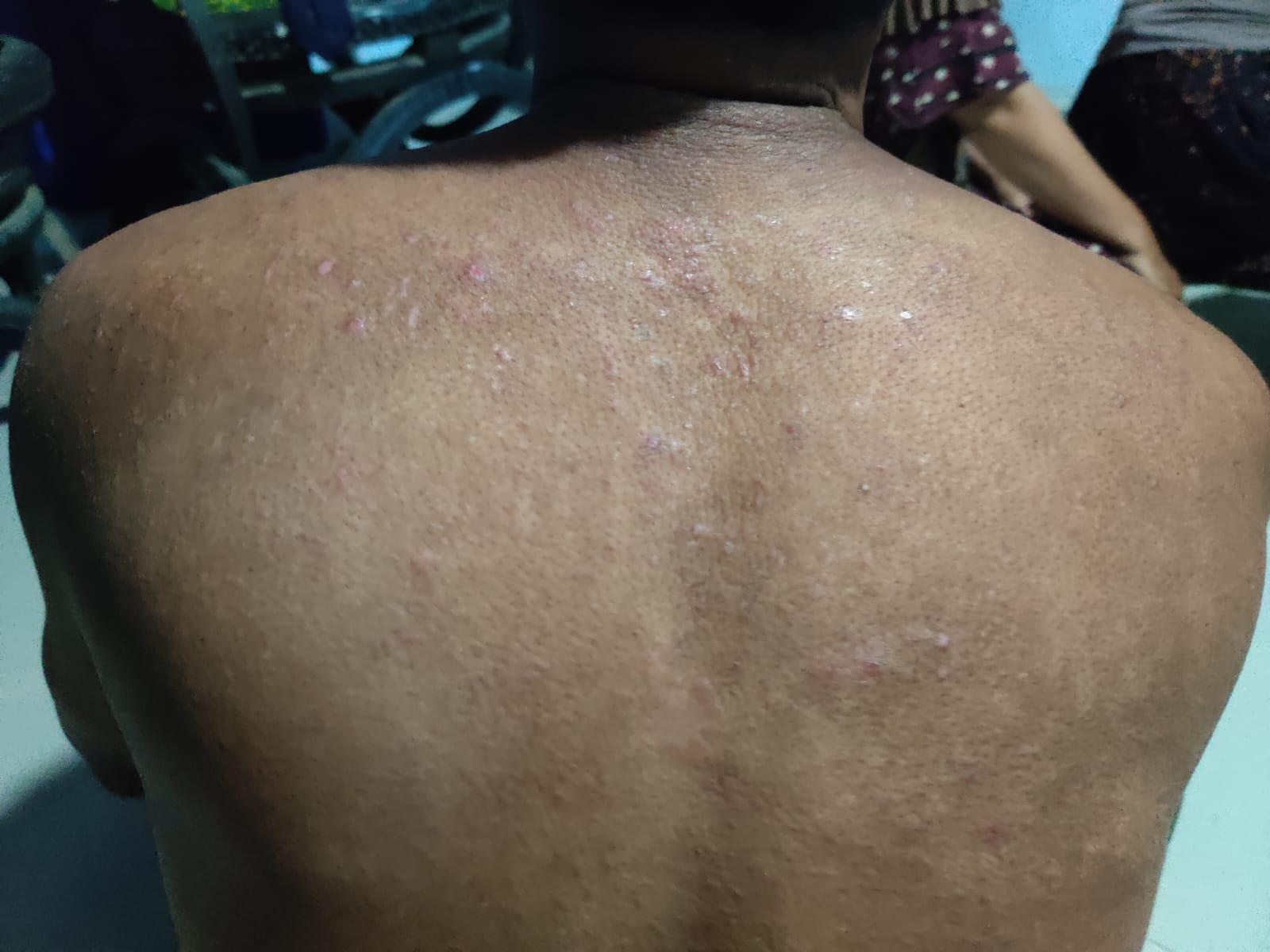 Warga Kampung Baru, Kelurahan Panjang Wetan, Kota Pekalongan memperlihatkan bagian tubuh yang terserang gatal-gatal, dugaannya air PDAM yang sudah tercemar menyebabkan warga terserang infeksi kulit, Sabtu (20/4).