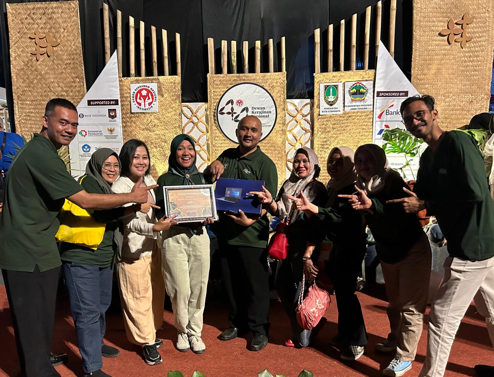 Penghargaan stan terbaik kedua di ajang Deskranas Expo 2024 diserahkan langsung oleh Ibu Walikota Surakarta, Selvi Ananda pada acara penutupan yang berlangsung Sabtu 18 Mei 2024 malam.
