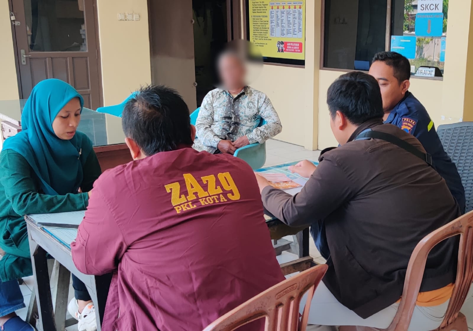 Korban dan pelaku saat menjalani pemeriksaan di Polsek Pekalongan Barat, Selasa (17/9).