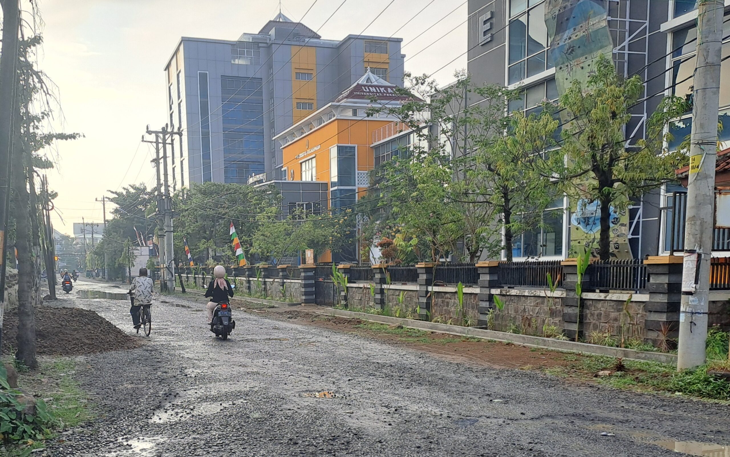 “Di kanan kiri ada kampus megah, tapi jalan belakangnya rusak sekali. Kami berharap ada perhatian dari pemerintah atau pihak terkait agar segera ada solusi dan realisasi perbaikan,” lanjutnya.